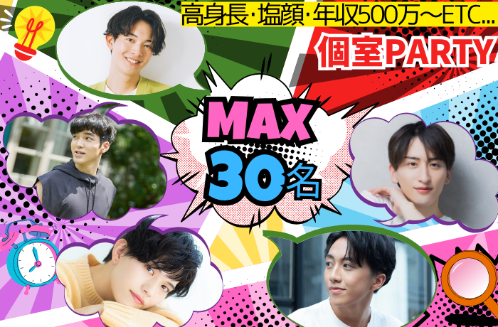 【MAX30名】20代中心《メガ個室☆高身長・大卒etc...》男性22~32歳×女性21~33歳
