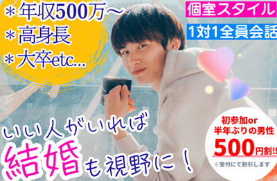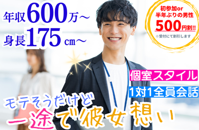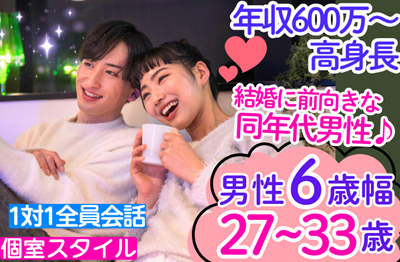 <女性 前日までのご予約で無料>★★男性満席御礼★★年収600万以上☆大卒《2年位で結婚を考えたい男女》男性27~34歳×女性27~35歳