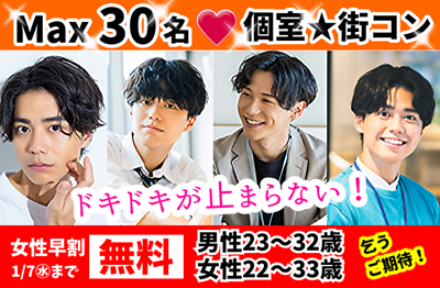 <女性12/24㊌までのご予約で無料!>【MAX30名☆20代30代】 高身長・塩顔・年収500万~etc... 《大人数☆メガ個室Party》男性24~35歳×女性23~36歳