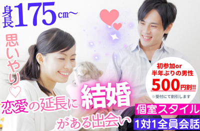 【一人参加限定】身長175cm以上☆大卒《いい人がいれば結婚も考えている男性編》男性24~38歳×女性23~39歳