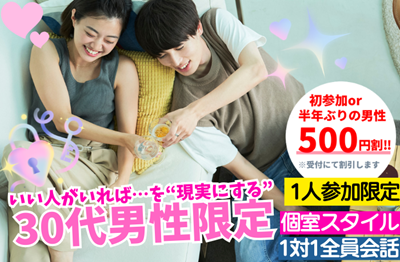 【一人参加限定】大卒☆年収600万以上《“そろそろ本気で”!結婚にも前向きな男性》男性30~39歳×女性29~38歳