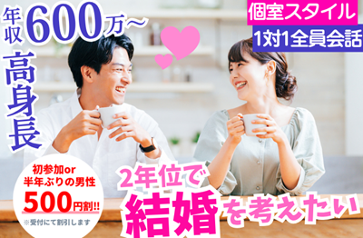 【5/16まで早期予約特典あり】年収600万以上☆高身長《2年位で結婚が理想!同年代婚活》男性29~35歳×女性28~36歳