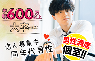 ★★男性満席からの増枠1席★★<女性も残わずか>【一人参加限定】年収600万以上☆大卒《2年位で結婚を考えたい男女編》男性31~38歳×女性30~39歳
