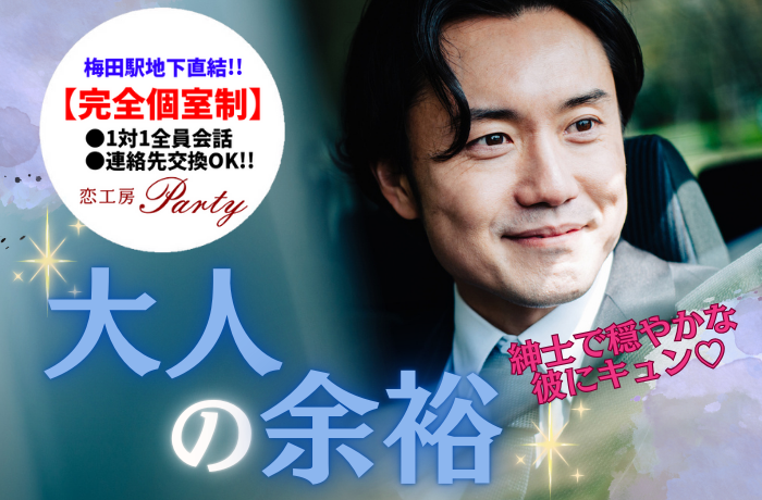 ★★初めて参加でも安心★★男女残席僅か!【一人参加限定】年収700万以上《親しみやすい人柄★包容力のある男性》男性30~42歳×女性30~41歳