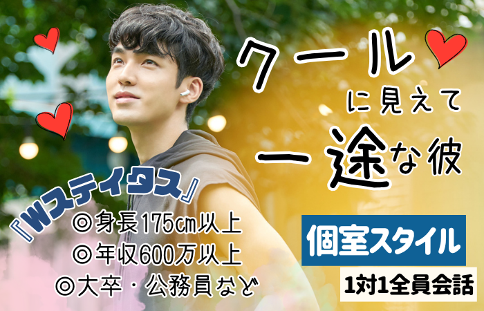 ★★★男性大幅先行中★★★<女性も間もなく満席>年収600万以上☆大卒《一途でステキ♡彼女想いの男性編》男性27~34歳×女性26~35歳