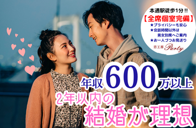 ★★★男性満席御礼★★★<女性も間もなく満席>いい人がいれば結婚も視野に♪《年収600万以上!誠実な男性編》男性28~35歳×女性27~36歳