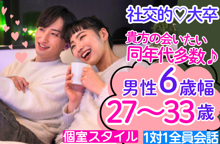 【MAX30名】20代30代《メガ個室♡大卒・正社員etc 》男性26~37歳×女性26~38歳