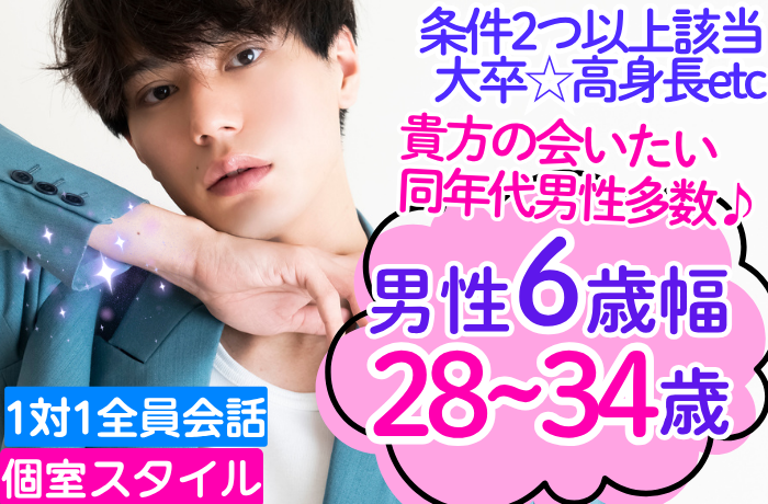 【男性6歳幅☆Wステータス】身長175㎝以上★大卒★年収600万etc《参加条件2つ以上の男性編》男性28~34歳×女性27~35歳