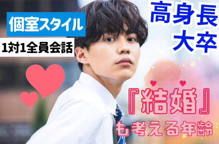 ★★★男性満席からの増枠残1席★★★<女性も残2席>身長175㎝以上☆年収600万以上etc《いい人がいれば結婚も考えている男性編》男性24~33歳×女性23~33歳