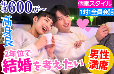 ★★★男性満席御礼★★★<女性もラスト1席>高身長☆年収600万以上etc《2年位で結婚も考えたい男女編》男性30~37歳×女性29~38歳