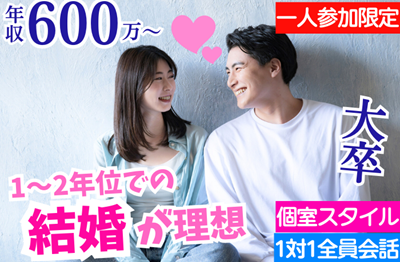 【一人参加限定】真剣交際&結婚前向き《大卒☆将来も考えてくれる一途な男性編》男性28~34歳×女性27~35歳
