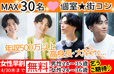 【MAX30名☆20代30代】 高身長・大卒・年収600万~etc... 《大人数☆メガ個室Party》男性27~38歳×女性26~39歳