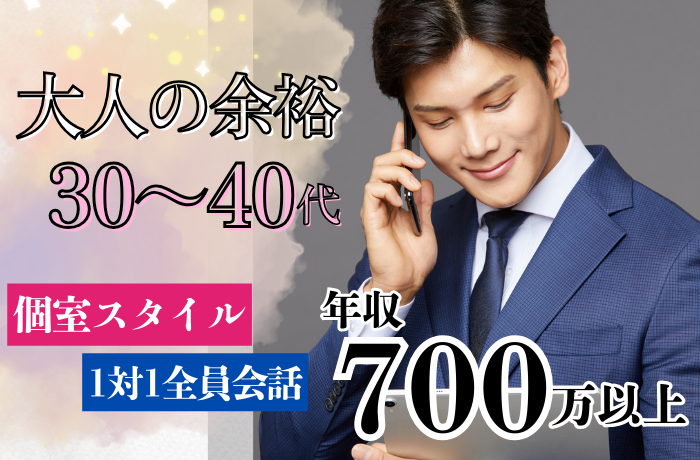 ★★男女大人気で残1席づつ★★年収700万以上《年齢より若見え♡色気がある男性編》男性37~49歳×女性36~48歳