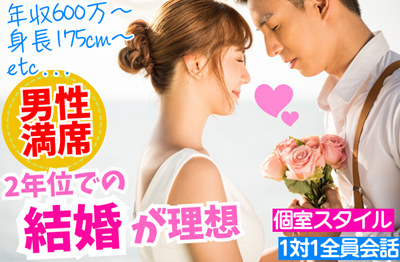 ★★★男性満席御礼★★★<女性もラスト1席>身長175cm以上・年収600万以上etc…《2年位での結婚が理想の男女》男性25~33歳×女性24~34歳