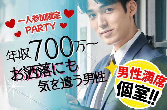 ★★男性満員御礼★★女性もラスト1席!【一人参加限定】年収700万以上*お仕事も安定《お洒落と褒められる男性編》男性31~43歳×女性30~42歳