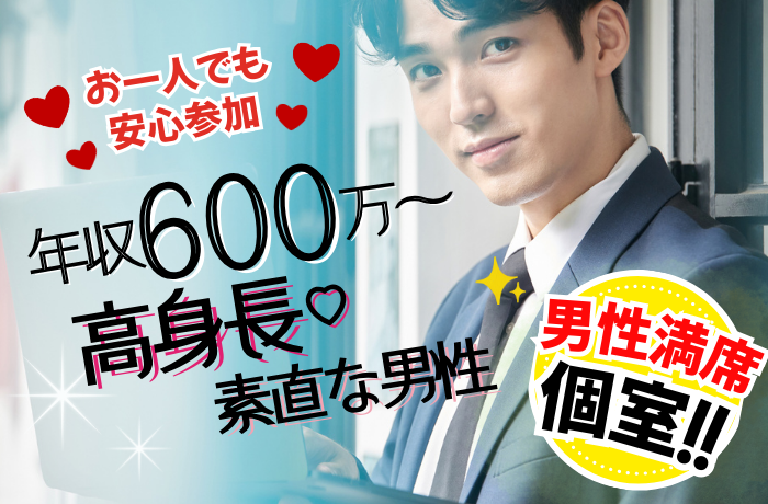 ★★男性満員御礼★★女性のみ残2席!【一人参加限定】身長175cm以上*年収600万以上《仕事でも活躍!素直で思いやりのある男性》男性29~38歳×女性28~37歳