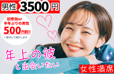 【4/17まで早期予約特典あり】★★★女性初参加多数で満席★★★<男性も残2席>年上の彼が好き♡ 《癒し系で可愛い!魅力的な彼女》男性25~33歳×女性24~34歳