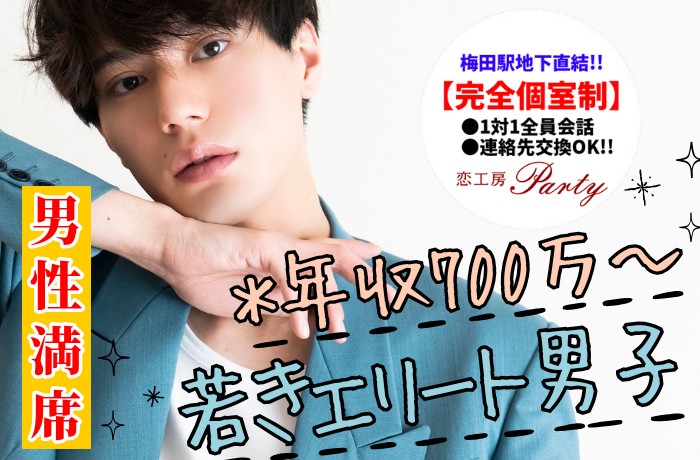 <女性12/24㊌までのご予約で無料!>【MAX30名☆20代30代】 高身長・塩顔・年収500万~etc... 《大人数☆メガ個室Party》男性24~35歳×女性23~36歳