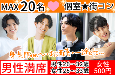 <女性500円ラスト1席>★★★男性満席御礼★★★【MAX20名】身長175㎝以上・お洒落・一途etc...《同年代♡個室型街コン》男性26~32歳×女性25~33歳